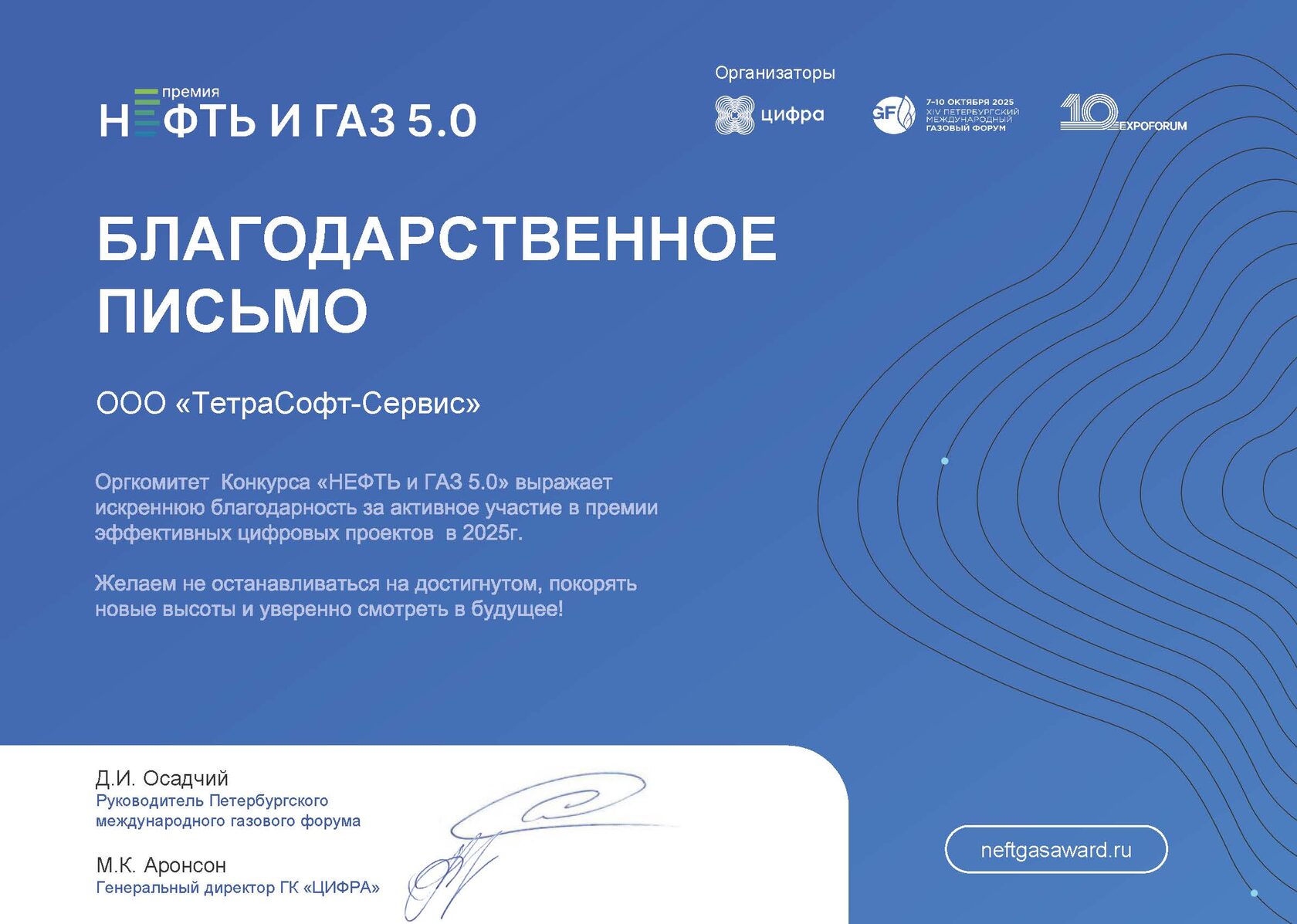 ООО «ТетраСофт» представило свой проект RigSpace Risk Engineering на престижном конкурсе эффективных цифровых проектов «НЕФТЬ и ГАЗ 5.0», который состоялся в рамках XIV Петербургского международного газового форума.