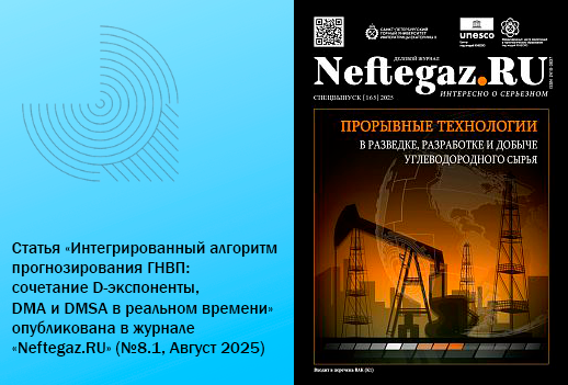Статья «Интегрированный алгоритм прогнозирования ГНВП: сочетание D-экспоненты, DMA и DMSA в реальном времени» опубликована в журнале «Neftegaz.RU» (№8.1, Август 2025)